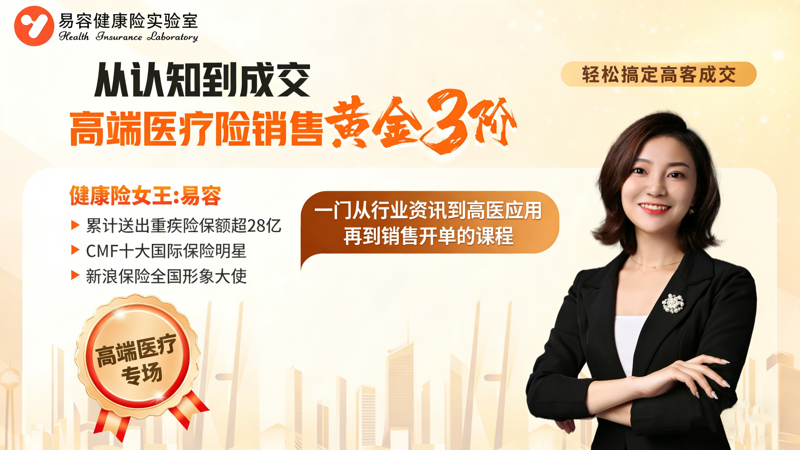 易容老师的高端医疗险销售课程,通过黄金三阶法教学,帮你打通从认知到成交的完整链路。